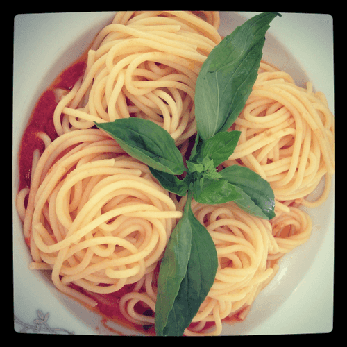 Spaghetti with cherry tomatoes and basil