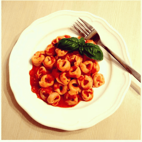Tortellini in tomato sauce is a classic of European cuisine that comes from sunny Italy. The delicate dough wrapped around juicy chicken filling with herbs creates an amazing contrast of textures. The tomato sauce, rich in the aromas of garlic, sweet pepper, and fresh herbs, gives the dish a velvety depth of flavor reminiscent of warm Mediterranean evenings. This dish is perfect for both family dinners and festive tables. It not only delights the eye with its elegant shapes but also offers a rich gastronomic experience that reveals the full palette of flavors from the soft dough, tender meat, and rich sauce. Tortellini can be enjoyed as a standalone dish or complemented with a glass of light white wine for a true celebration of taste.
