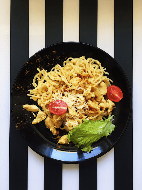 Chicken carbonara spaghetti is an interpretation of the classic Italian dish that brings the tenderness of chicken fillet into a rich creamy-egg sauce. Traditionally, carbonara is made with pancetta, but this version makes the dish softer and more versatile. The recipe's roots lie in Italian culinary traditions where simplicity and rich flavor are key principles. Pasta infused with creamy aroma and the tenderness of parmesan pairs perfectly with sautéed chicken and hints of garlic and basil. Sesame adds a light nutty note. This dish is suitable for a cozy family dinner or an exquisite lunch. An important point is the proper preparation of the sauce, which should coat the pasta with a velvety layer without turning into an omelet. Chicken carbonara is a harmony of flavors and textures that offers gastronomic pleasure.