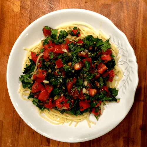 Linguini crudo is a harmony of freshness and sophistication inspired by Japanese cuisine. The recipe features thin, delicate linguini that absorb the aromas of fresh tomatoes, garlic, and herbs like a blank canvas. Basil adds warm spicy notes, cilantro refreshes, and capers bring a tangy kick. Grated Grana Padano or Parmesan cheese adds depth of flavor and creates a creamy texture. This recipe celebrates simplicity and natural ingredients where each component reveals its character without cooking. An olive oil dressing unites the flavors while the dish's lightness makes it perfect for a summer dinner or quick lunch. Linguini crudo is an ode to freshness—a picturesque dish that can surprise and delight with its naturalness.