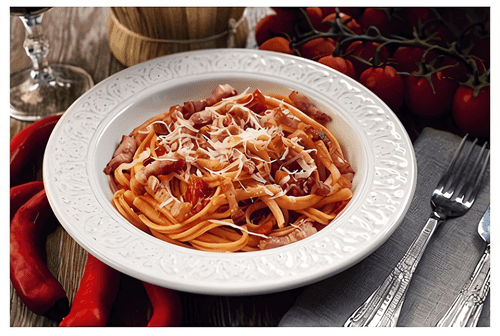 Pasta with bacon, garlic, and tomatoes is a classic dish of European cuisine that combines rich flavors and aromas. It recalls the Italian tradition of simple yet refined pastas where key ingredients create a harmony of taste. Fried garlic adds spiciness, bacon gives a slight saltiness and depth, while stewed tomatoes add juiciness and freshness. Spaghetti soaked in aromatic sauce becomes tender and rich. Parsley completes the composition with light greenery. This dish is perfect for a cozy dinner with family or friends when you want something hearty but not too complicated to prepare. It pairs wonderfully with a glass of white wine and fresh bread, creating an atmosphere of Mediterranean comfort.