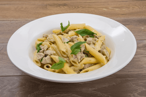 Penne with sausages and mustard
