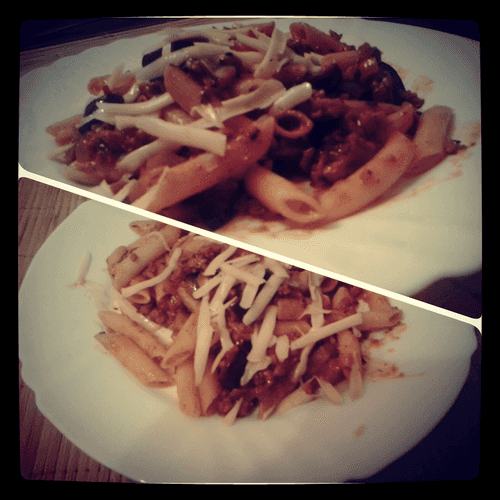 Pasta with minced meat and eggplant