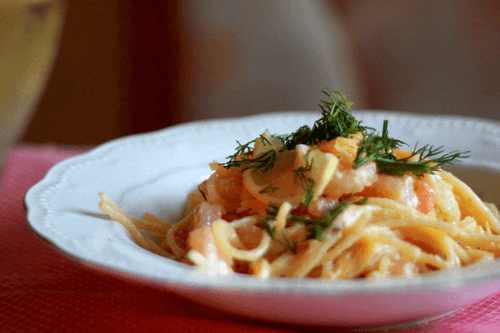 Pasta with shrimps in ginger-cream sauce