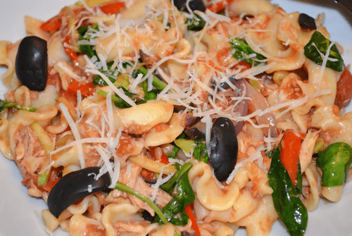 Campanelle with tuna, vegetables, and spinach is a vibrant dish of Italian cuisine that combines the freshness of vegetables, the richness of tuna, and the tenderness of pasta. Campanelle's curved shape perfectly holds the sauce infused with garlic, onion, and tomato aromas. Spinach adds lightness and freshness while olives provide a tangy touch. Grana Padano completes the composition with its soft creamy flavor. This dish is not only nutritious but also balanced in taste and texture – each ingredient complements the others. Campanelle with tuna is suitable for cozy family dinners as well as exquisite gastronomic gatherings, filling the atmosphere with Italian flair. A wonderful choice for those who appreciate harmony of flavors and quality ingredients.