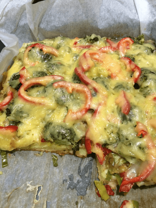 We take out the pizza made with quick kefir dough.