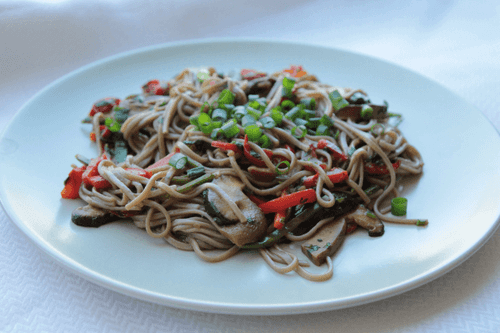 Summer soba noodle stir-fry is a vibrant, light, and aromatic dish from Japanese cuisine, perfect for warm days. Soba noodles made from buckwheat flour have a nutty flavor and pair wonderfully with crunchy vegetables: carrots, bell peppers, green peas, and shiitake mushrooms. Sesame oil adds a delicate nutty aroma to the dish while soy sauce enriches it with a rich umami taste. Cilantro and green onions add freshness and a hint of spiciness. This stir-fry is not only delicious but also healthy – rich in vitamins and antioxidants, easily digestible, and can be served as a standalone dish or as a side to fish or tofu. An ideal option for a quick and healthy dinner that offers a sense of lightness and Eastern sophistication.