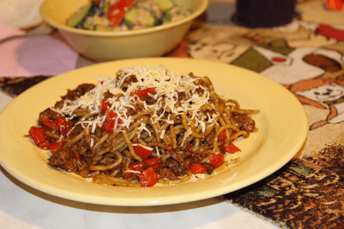 Spread the sauce over the cooked pasta and sprinkle with grated cheese on top.