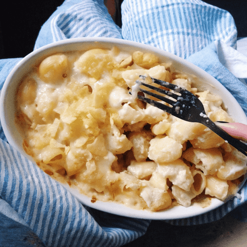 Macaroni in creamy sauce, known as Mac and Cheese, is a classic dish of European cuisine rooted in English and American gastronomy traditions. Its simplicity and rich creamy-cheesy flavor have made it popular worldwide. Tender macaroni soaked in a velvety cheddar and parmesan-based sauce create a harmony of softness and richness, while baking with a crispy potato chip crust adds textural contrast. The dish is perfect as a cozy home dinner warming on cool evenings or as a side to meat or vegetable dishes. Its versatility allows for experimentation with spices, herbs, or bacon, turning the traditional recipe into an author's masterpiece.