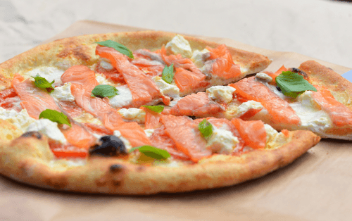 Pizza with Philadelphia and marinated salmon is an exquisite combination of tenderness and rich flavor. Its roots trace back to European culinary traditions, blending Italian classics with the refined taste of seafood. The dough, chilled for ideal structure, serves as a base for a harmonious blend of cheeses: creamy Philadelphia, delicate mozzarella, and tangy parmesan create a rich texture. Cherry tomatoes add freshness while basil brings an aromatic note. Salmon is the key ingredient that gives this pizza a noble marine lightness. It is baked at high temperatures, making the crust crispy and the filling juicy. Served with olive oil highlights its gastronomic elegance. A perfect choice for connoisseurs of refined taste!