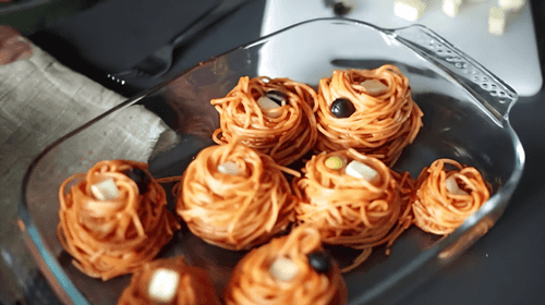 Crispy nests are an exquisite dish of Italian cuisine that embodies the tenderness of pasta and the aroma of baked sauce. This recipe evokes cozy family dinners in sunny Italy, where cooking is an art. Spaghetti nests soaked in rich tomato sauce with hints of basil and oregano acquire a crispy crust thanks to breadcrumbs. Inside each nest is tender mozzarella and a tangy olive, creating a unique flavor combination. This dish is perfect for festive tables, surprising guests with its original presentation and rich aroma. Crispy nests can be complemented with fresh cherry tomatoes and herbs for added brightness. It's not just pasta—it's a gastronomic masterpiece that awakens love for Italian cuisine.