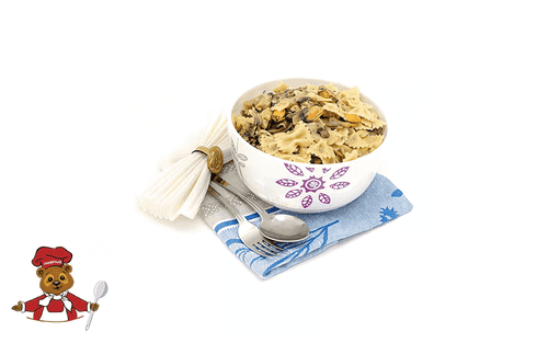 Pasta with mussels and mushrooms is a true gastronomic delight inspired by the richness of Italian cuisine. Seafood like mussels traditionally features in Mediterranean recipes, while mushrooms add depth and richness to the flavor. In this dish, delicate bowties absorb the creamy texture of coconut milk, creating a harmonious blend of earthy notes from the mushrooms and the sweet-salty aroma of seafood. Light herbal accents of dill refresh the flavor palette, while a mix of peppers adds spiciness. Served hot, it perfectly complements a cozy dinner or an elegant lunch. This dish evokes Italian coastal towns where fresh seafood and aromatic spices come together in beautiful culinary creations.