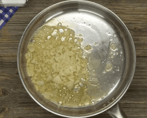 Chop garlic and onion finely. Melt the oil. Sauté the onion and garlic for 1-2 minutes.
