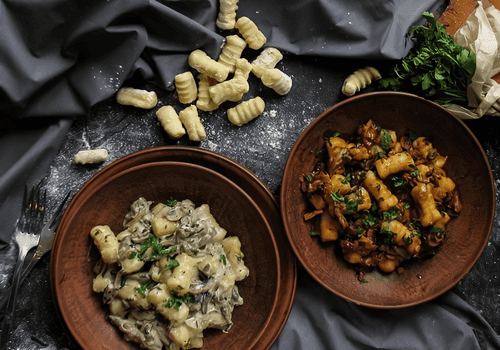 Gnocchi with two sauces are delicate Italian potato dumplings that embody the comfort and flavor of traditional cuisine. Their origin traces back to the northern regions of Italy, where potato pasta became a popular alternative to classic flour. Gnocchi have an airy texture and a soft, slightly creamy taste that pairs perfectly with two contrasting sauces. The creamy sauce offers richness, tenderness from mushrooms, and a hint of thyme, while the tomato sauce brings freshness, sweet-sour notes, and the aroma of herbs. This dish is served as a main or side dish, enjoying its harmony of flavors. It pairs wonderfully with a glass of white wine and fresh herbs, adding a romantic touch to any dinner.