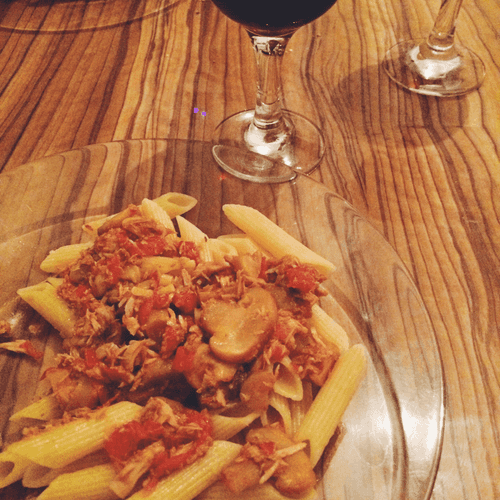 Pasta with tuna and champignons