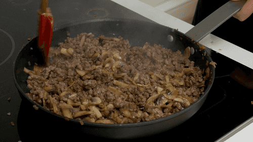 Add minced meat, season with salt and pepper, and fry, stirring occasionally, until cooked.