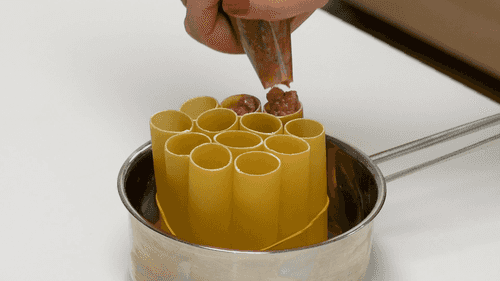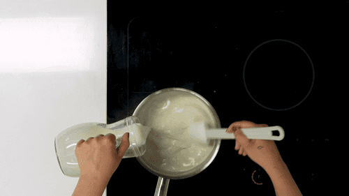 In a thick-walled pot or pan, melt the butter, then add flour, warmed milk, and prepare the béchamel sauce.