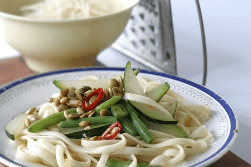 Pasta with zucchini and green beans