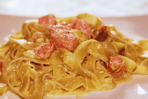 Fettuccine with crab, tomato paste, and green onions is an exquisite dish of Italian cuisine that combines the tenderness of seafood, the brightness of tomatoes, and the freshness of greens. The history of fettuccine pasta dates back to ancient Italy, where it was considered a symbol of home comfort and culinary mastery. In this recipe, crab adds a refined sweetness of the sea to the dish, while tomato paste with chunks of tomatoes adds a rich, slightly tangy note. Garlic enriches the aroma, and fresh green onions and dried herbs complement the composition with subtle herbal notes. The dish cooks quickly, making it an ideal choice for dinner with a glass of white wine. Cheese finishes the flavor with softness and depth. A wonderful way to immerse oneself in the atmosphere of Mediterranean gastronomy.