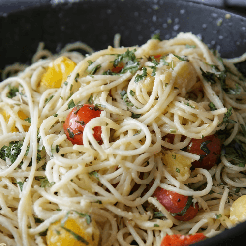 Pasta with cherry tomatoes, basil, and garlic is a true embodiment of Italian culinary simplicity and sophistication. The dish's history roots back to traditional recipes from southern Italy, where fresh, aromatic ingredients have always been the foundation of flavor. The combination of sweet tomatoes, delicate parmesan, and refreshing basil creates harmony, while garlic adds a spicy note. Pasta soaked in a buttery sauce transforms into a true feast of flavors. It's the perfect dish for a warm family dinner or a romantic evening. Served hot and garnished with fresh basil and parmesan, complemented by light wine or cool lemon water. Its simplicity in preparation makes it accessible even for beginners, while its delightful taste wins the hearts of gourmets worldwide.