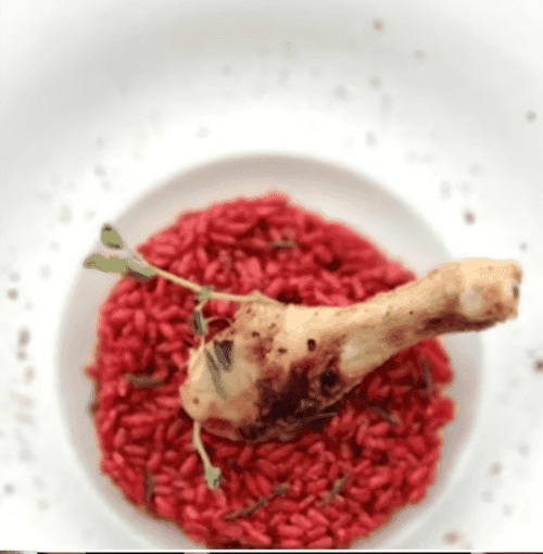 Beetroot risotto with chicken