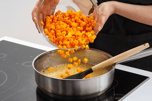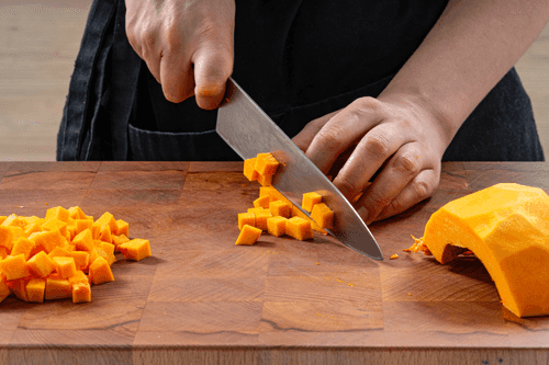 Cut the pumpkin into cubes about 1 cm on each side.