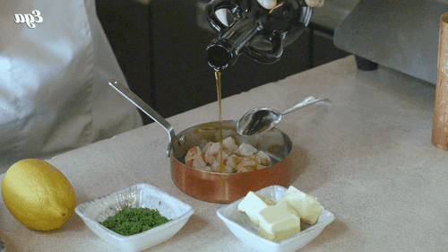 Cut the shrimp into large pieces, add olive oil, salt, pepper, and lemon zest. Let marinate for 5-10 minutes.