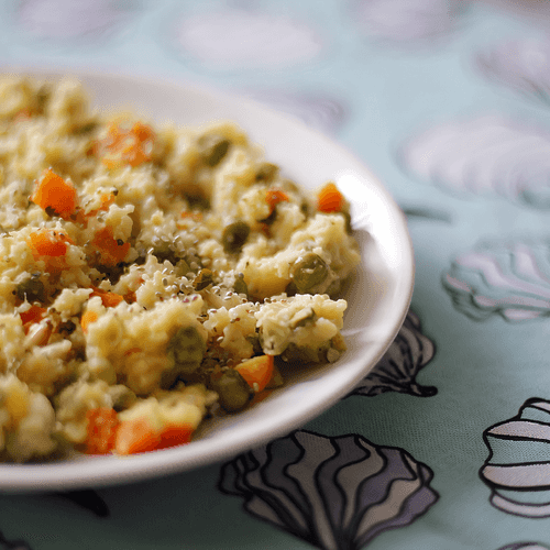 Colorful millet risotto is an original interpretation of the classic Italian dish where millet replaces traditional rice, giving it a delicate texture and nutty flavor. This dish is filled with vibrant colors thanks to fresh vegetables: carrots, celery, leeks, and green peas. The risotto is cooked in vegetable broth with the addition of aromatic herbs, creating a fragrant and rich combination. The finishing touches are butter, parsley, and crunchy pine nuts that add velvety softness and a hint of spiciness to the dish. It’s an ideal option for a light lunch or dinner that delights the eye and warms the soul while preserving the spirit of Italian cuisine in a new and unusual reading.