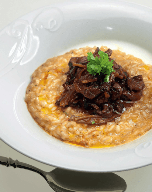 Risotto with sea cucumber is an exquisite dish of modern cuisine where a seafood delicacy finds a new expression. Sea cucumber, known for its delicate taste and firm texture, harmoniously blends with the creamy base of risotto, creating a balance between marine notes and rich creamy depth. Tomato paste adds a slight tanginess while red wine unveils the richness of aromas, enhancing the complexity of flavor. Italian parmesan adds zest, and fresh parsley completes the composition with a light spiciness. Historically, risotto is an Italian classic, but this version with sea cucumber transcends traditions by offering an unconventional combination of ingredients. This dish is perfect for gourmets seeking new gastronomic experiences and is ideal for special occasions when you want to impress guests with refined taste.