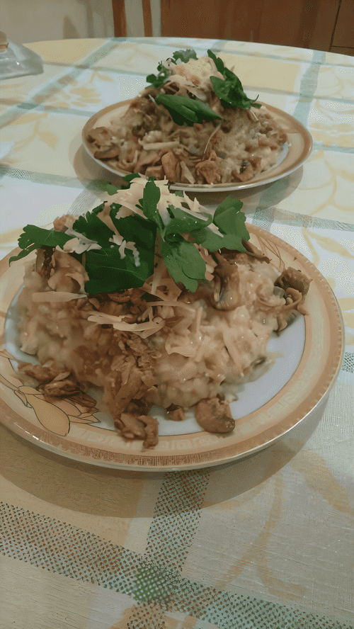 Tuna and mushroom risotto is a refined dish of Italian cuisine that combines the tenderness of rice, the depth of tuna flavor, and the richness of mushrooms. This variation of classic risotto gains new shades thanks to white dry wine and aromatic spices. The history of risotto traces back to northern Italy, where it is prepared with various ingredients, creating an endless array of flavor combinations. Here, salty tuna harmoniously complements the earthy notes of mushrooms, while green peas add freshness and a hint of sweetness. Grated hard cheese completes the composition, giving the dish a creamy texture. An ideal option for a cozy dinner, this risotto delights with its rich taste and is an excellent choice for seafood lovers and Italian gastronomy.