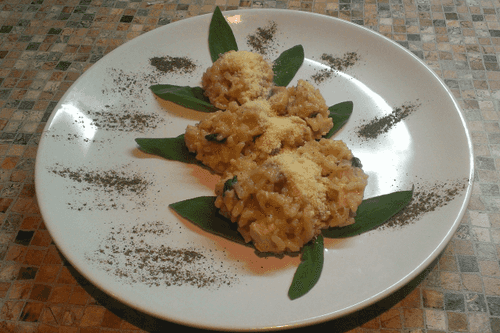 Risotto with turkey, mushrooms and sage