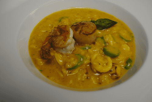 Risotto with seafood and asparagus