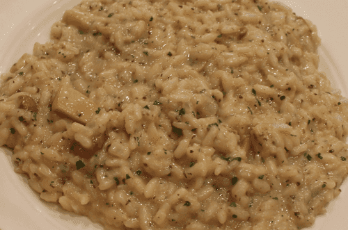 Serve on a plate. When serving, gently tap the bottom of the plate with your palm to make the risotto 'wave'.