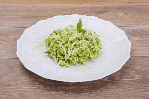 Green risotto with spinach is an elegant dish of Italian cuisine that combines rich flavor and the freshness of greens. It originates from traditional risotto but is enriched with the aromas of spinach and mint, creating a delicate, creamy texture and a light herbal note. White wine adds a slight acidity that highlights the softness of butter and the richness of parmesan. This dish is perfect for a light dinner or special occasions when you want to try something refined. Green risotto not only delights with its taste but also with its bright, appetizing color, making it a true centerpiece on the table. Served hot and garnished with fresh mint leaves, the combination of beans and spinach adds extra nutrition.