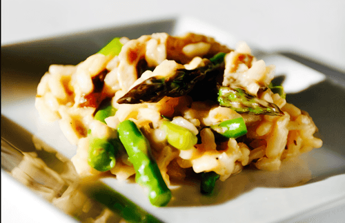Risotto with asparagus and green onions is an exquisite dish of European cuisine that combines the tenderness of Italian Arborio with the brightness of spring asparagus. Originating in northern Italy, this dish embodies the harmony of creamy flavor enriched with Parmesan and the light freshness of onion. During cooking, the rice slowly absorbs the aroma of chicken broth, creating a rich, creamy texture. The addition of butter makes the risotto velvety, while asparagus adds a subtle green sweetness. It is perfect for both a festive dinner and a cozy family lunch. Served hot, garnished with fresh green stalks and a pinch of black pepper to enhance the depth of flavor.
