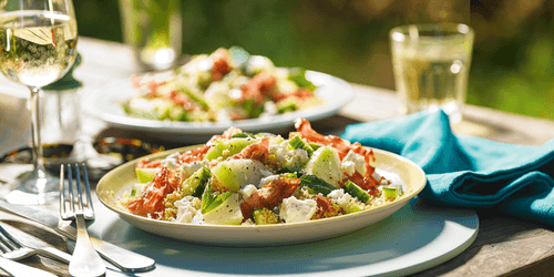 Melon and smoked ham salad is a refined dish of Italian cuisine that embodies the balance of sweet and salty. The combination of fragrant Galia melon and spicy smoked ham creates a unique flavor, complemented by the tender freshness of spinach and a light spiciness of leek. The dressing made from extra virgin olive oil and balsamic vinegar adds sophistication to the dish, revealing its rich flavor profile. This salad is perfect for a light summer dinner or as an original appetizer for a festive table. It pairs wonderfully with white wine, accentuating the layered flavor nuances. Historically, such combinations are found in traditional Italian gastronomy, where the skill of combining simple ingredients into refined dishes is considered an art.