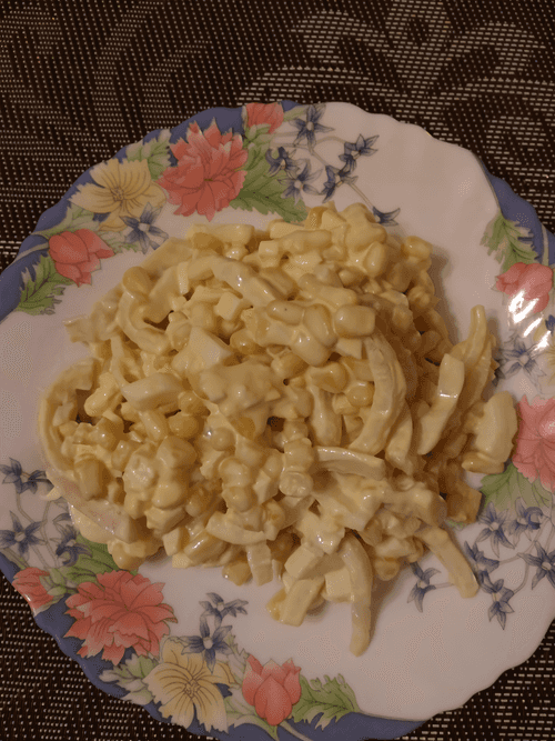 Салат из кальмаров «Нежный» — изысканное сочетание морепродуктов, яиц и кукурузы, которое радует нежностью вкуса и легкостью текстуры. Кальмары, обладающие деликатным ароматом моря, гармонично сочетаются с вареными яйцами, придающими блюду мягкость. Легкая сладость кукурузы дополняет вкус, а предварительно обработанный лук убирает излишнюю остроту, добавляя пикантности. Завершающий штрих — майонез, который объединяет все ингредиенты в единую нежную композицию. Считается, что блюда из кальмаров популярны в различных кухнях мира, но этот рецепт — авторская находка, позволяющая насладиться гармоничным балансом вкусов. Салат идеально подходит для праздничного застолья, романтического ужина или легкого перекуса, оставляя приятное послевкусие и ощущение удовлетворения.