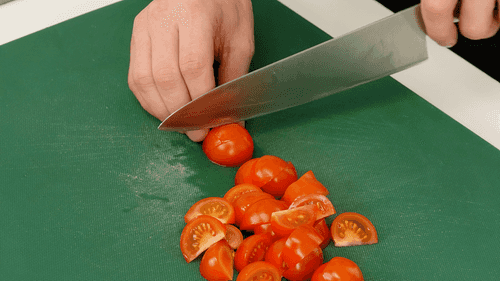 Cut radishes and cucumbers into thin rings, tomatoes into wedges.