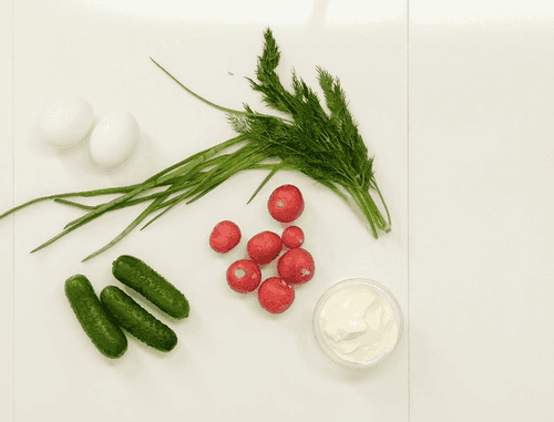 Like Mimosa, Spring Salad is a legacy of Soviet cooking. The recipe is simple, and the salad ingredients are inexpensive and accessible. Cucumbers and radishes provide the crispy texture, while eggs and sour cream add tenderness. All together, it symbolizes the awakening of nature and the pleasure of life.