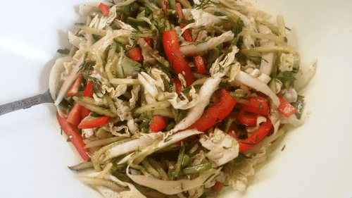 Vegetable salad with avocado, cucumber and Chinese cabbage