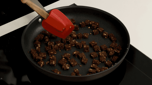 Cut Borodinsky bread into cubes and fry in sunflower oil.