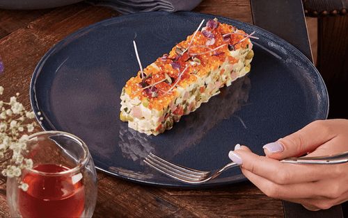 This is how Olivier is prepared in the Vasilchuki restaurants (Chaikhona No. 1 of the Vasilchuk brothers).