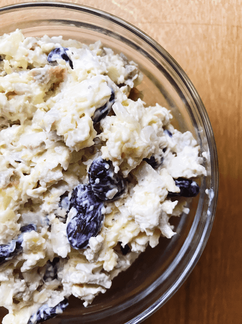 Finely chop the smoked chicken and red onion.