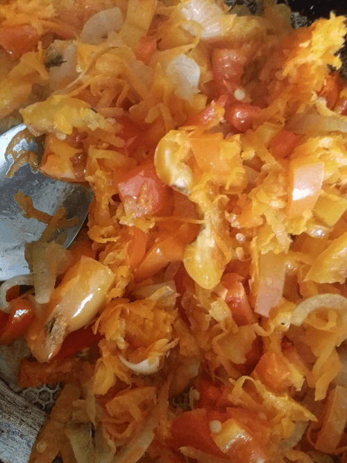 Sauté the prepared vegetables in vegetable oil (50 ml).