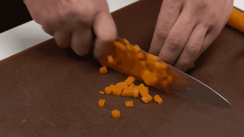 Peel the potatoes and carrots and cut them into small cubes. Clean the fish, divide it into fillets, and cut the herring fillet into the same small cubes.