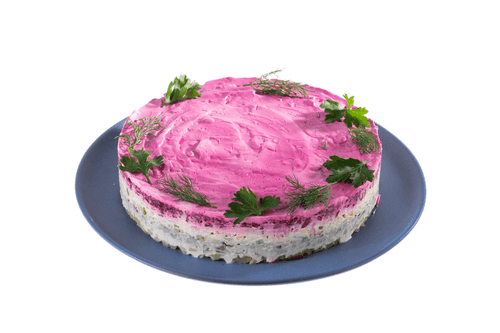 Spread mayonnaise on the final layer of the beetroot. Send the finished salad to the fridge for a couple of hours to let it soak.