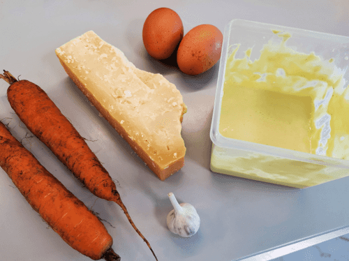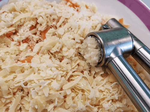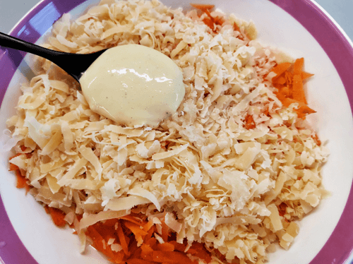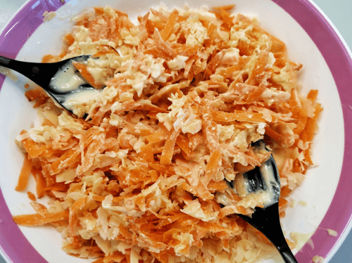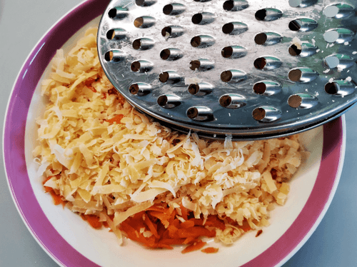 Grate the cheese and combine it with the carrot.