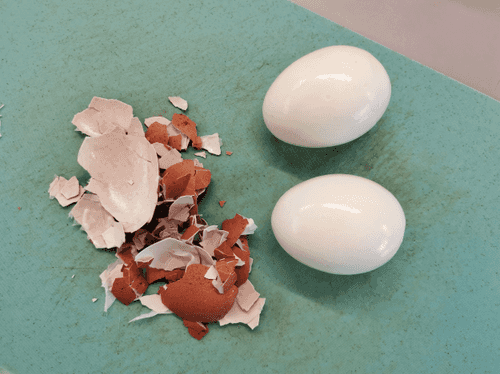 Peel the hard-boiled eggs.