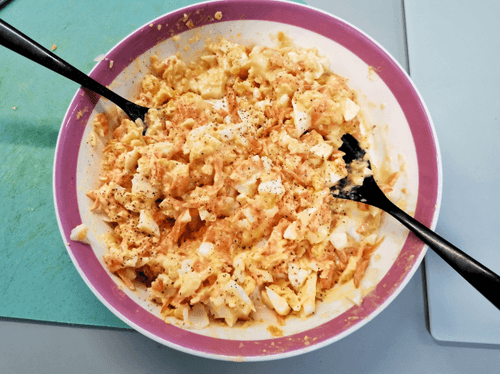 Then chop the eggs finely.