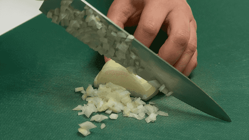 Heat vegetable oil in a pan and fry the onion until golden brown.